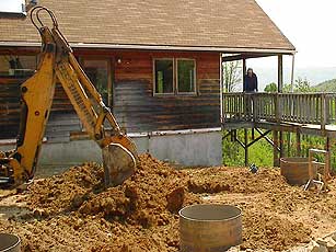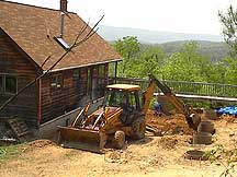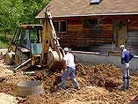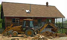 Time to explore. I rented a front-loader with a toothed bucket and leveled the building pad. Strange, no topsoil. Not anywhere. Not even under the pleasant little lawn. So I rented a backhoe and dug holes here and there like some demented prospector. No topsoil within the first two feet of depth. This, I remember thinking to myself, spells Trouble. |